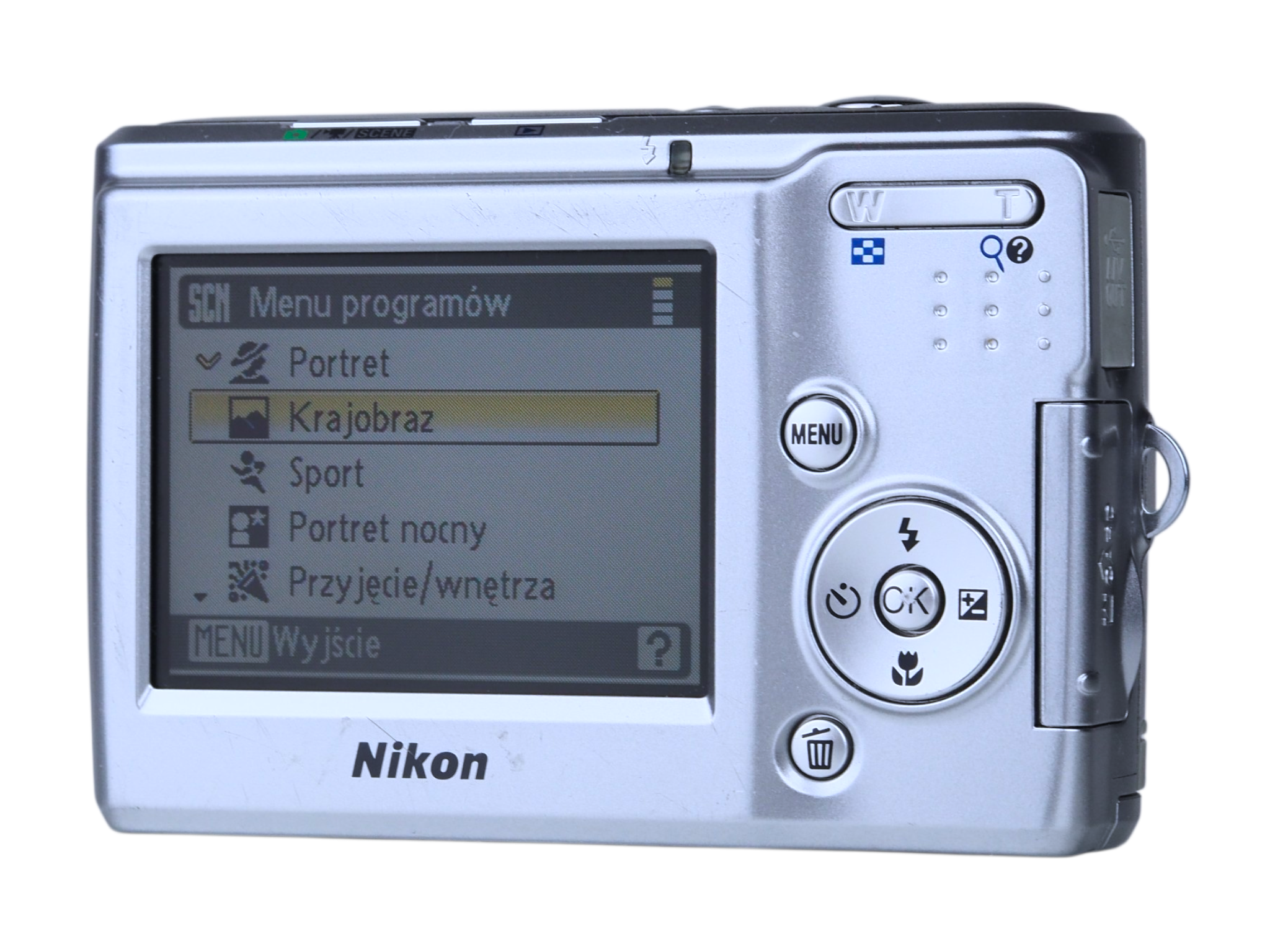 - Matryca 7.1 MP CCD: Sensor CCD o rozdzielczości 7.1 megapiksela daje charakterystyczny, miękki obraz z naturalnymi kolorami i delikatnym „ziarnem”, typowym dla starszych kompaktów Nikona.